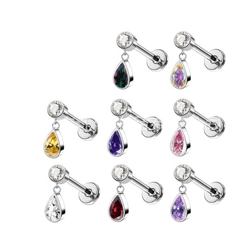 F136 Titanium Earrings Water Drop Pendant Cylinder Package 5A Diamond Teardrop G23 Titanium Alloy Body Piercing Jewelry Ear Bone